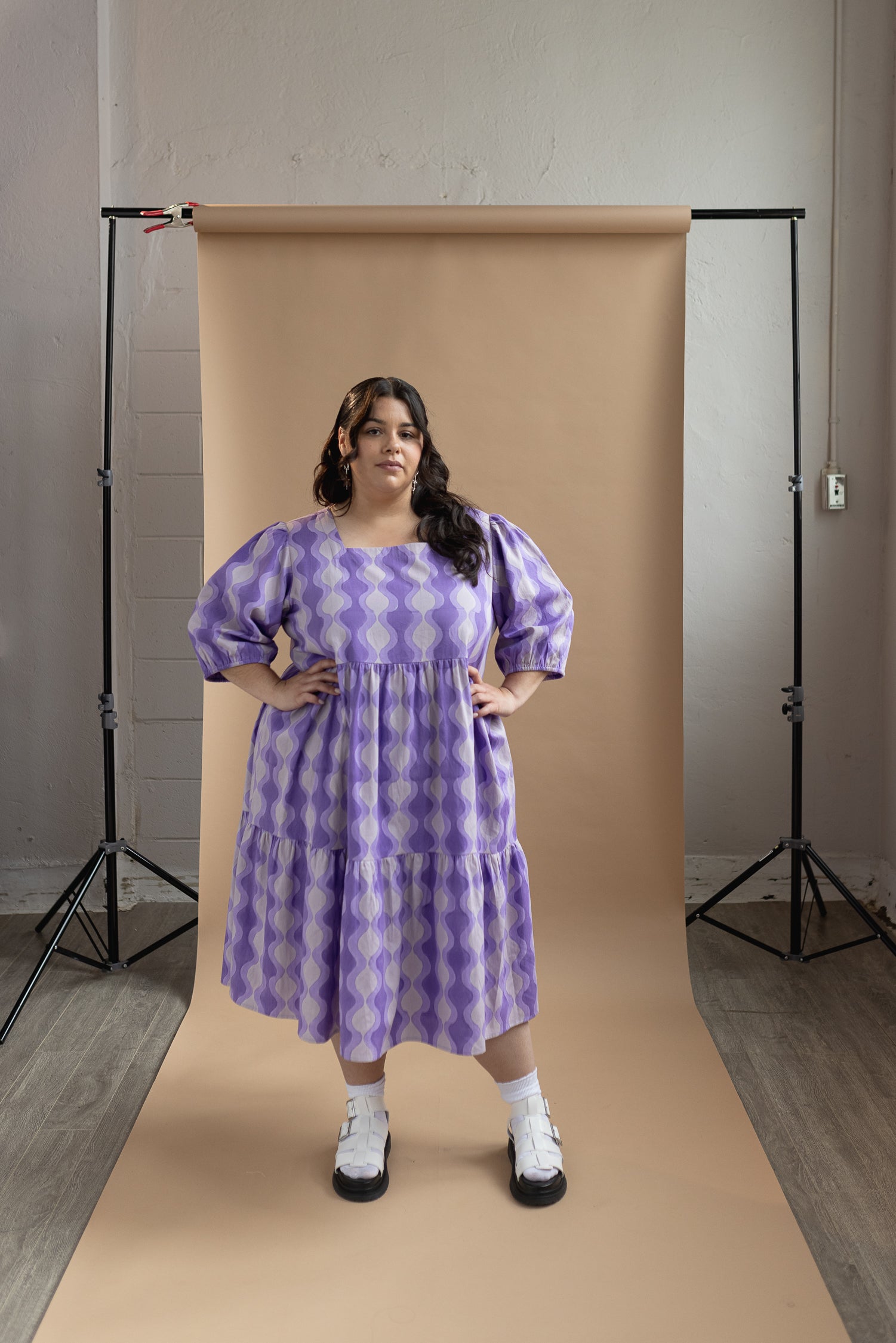 The birthday dress is made with a medium weight, hand block printed, organic cotton twill. There are deep pockets in the side seams, no zippers no buttons just a simple pull over dress designed to sit away from the body and be worn for all occasions especially a day time birthday party. Available in sizes 1-4, these are made up and depending on how you like clothes to fit can accommodate the following: