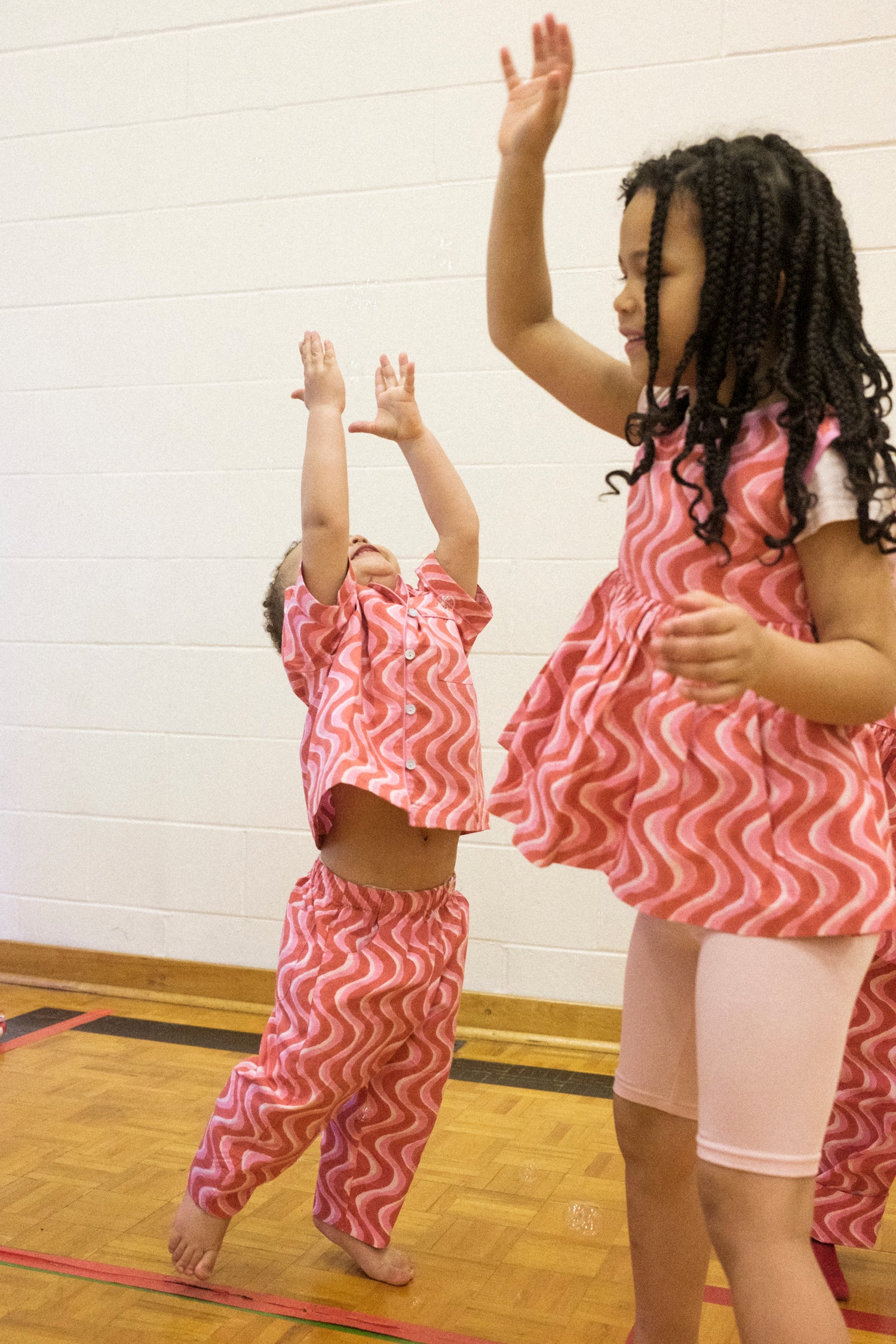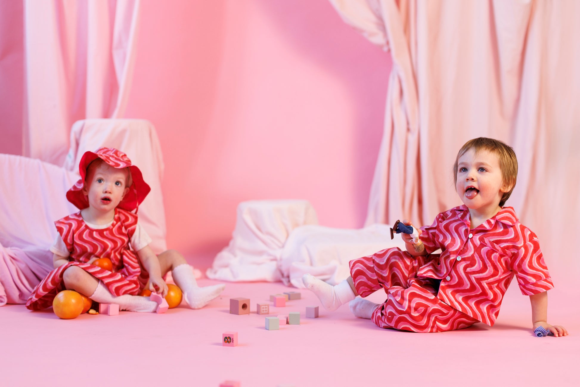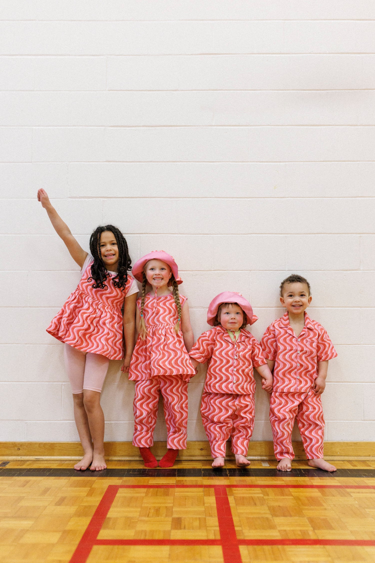 The Buddy Pants in Lollipop are made from durable cotton twill and block printed by hand in a bold, wavy pattern that brings major ‘80s birthday party energy. They’ve got a soft elastic waistband with an adjustable tab inside, plus a 3" cuff so you can size up and let your kid grow into them.