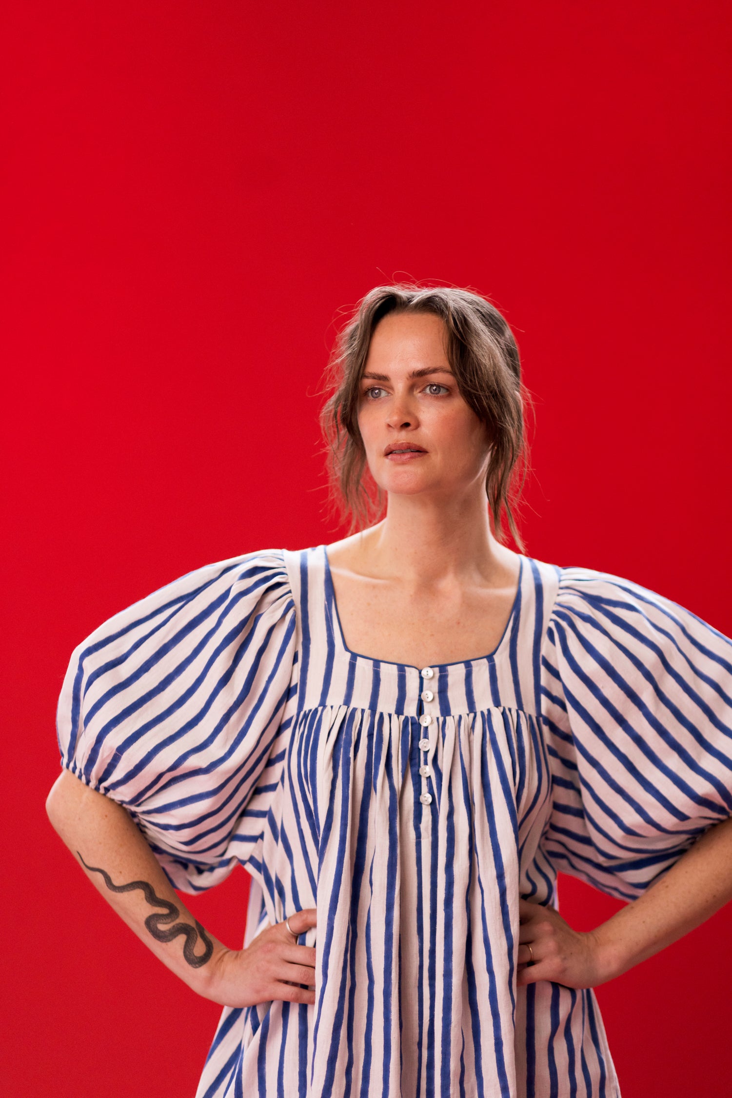 Day Dress in Blue Stripe