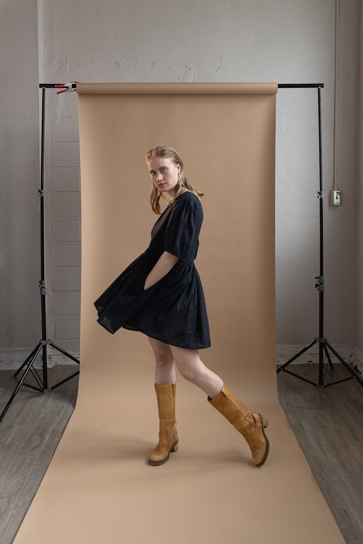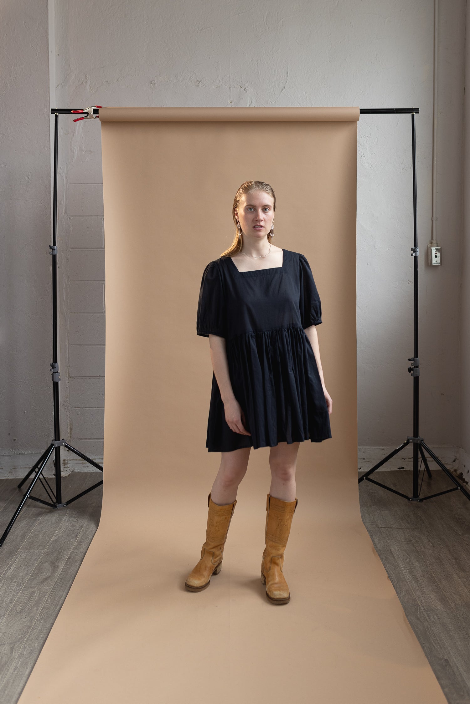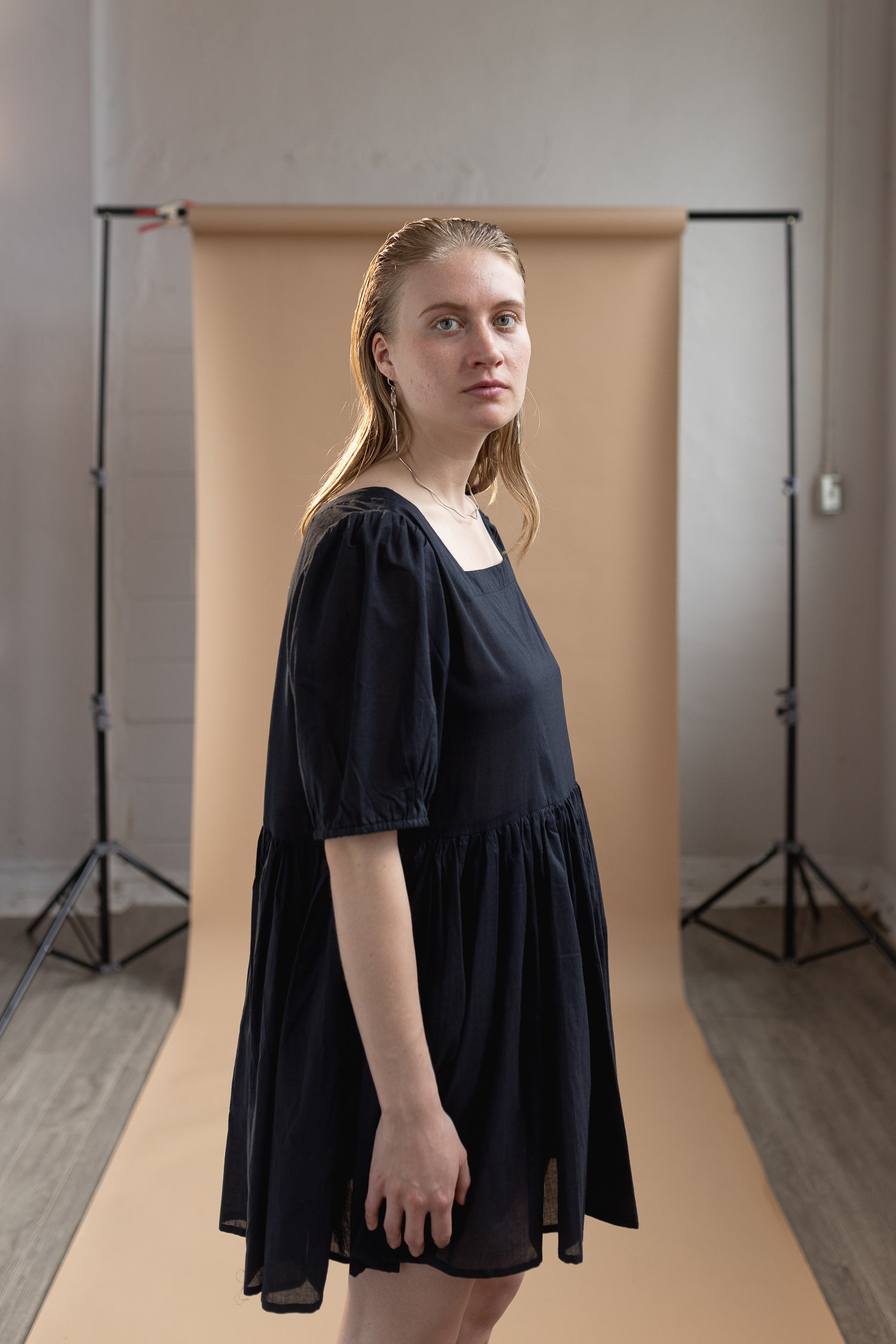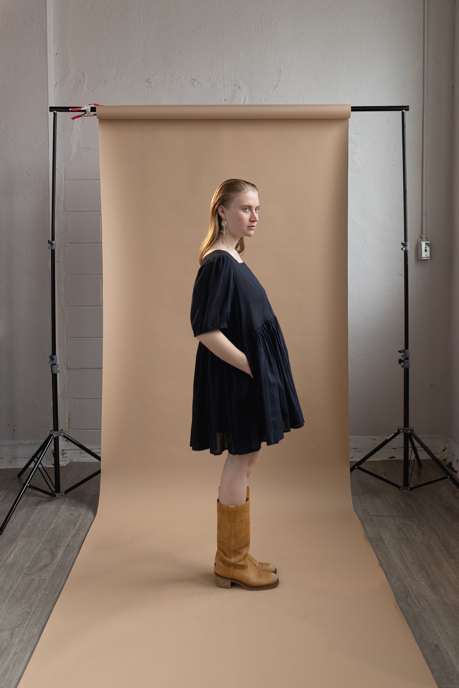 This babydoll dress is made with a very light weight organic cotton voile, it's pretty much sheer-think about what you'll wear underneath! There are pockets in the side seams and a very full skirt making it feel like the dress is floating around you. It's a perfect do-anything summer dress.