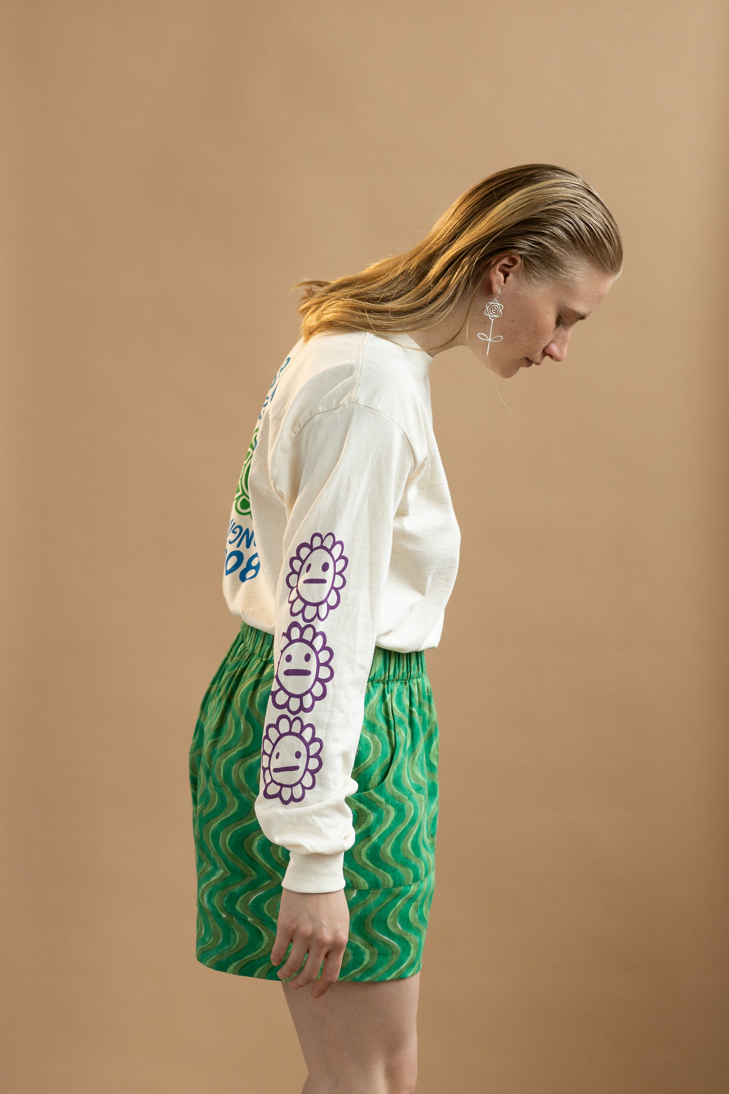 A perfect summer short, something between a sports short and a dress short. Made in a light weight organic cotton twill. An elastic band around the entire waist makes these comfortable and easy to fit. Available in size S to XXL, they run a little bit big.