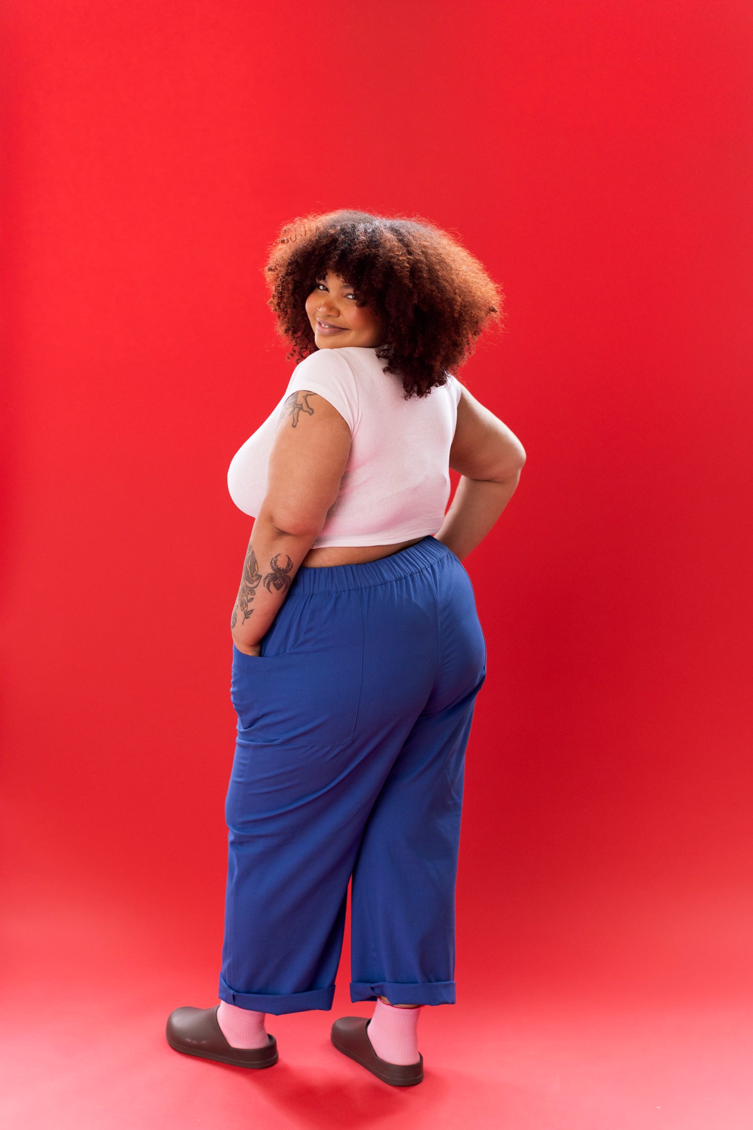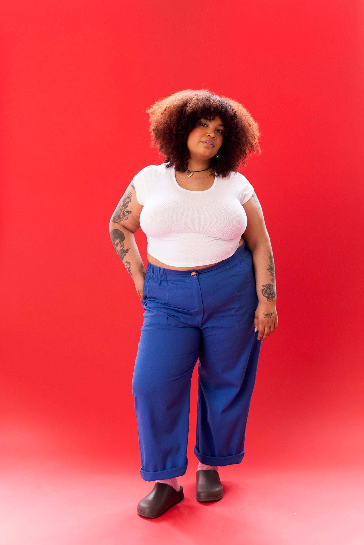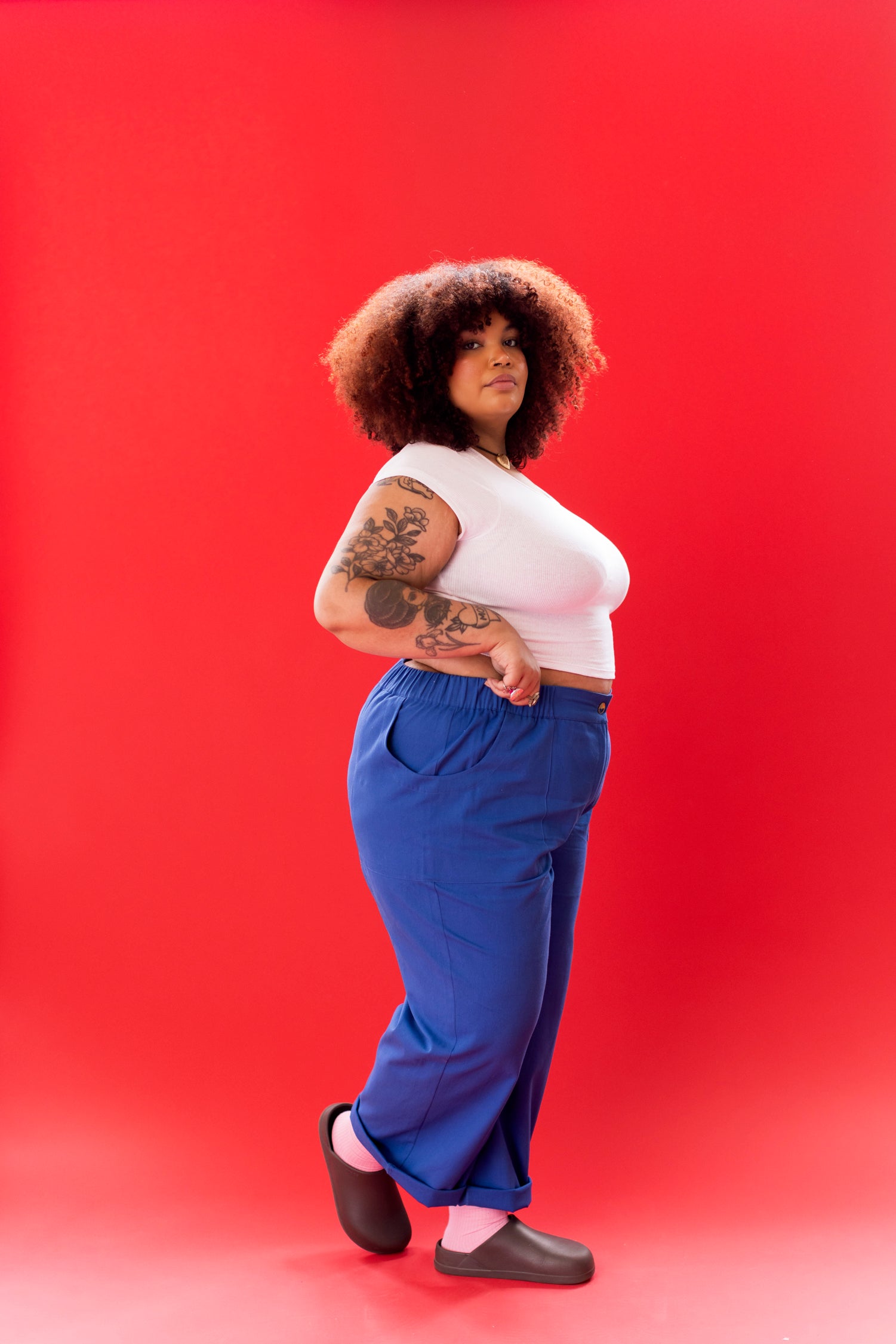 The trouser has a full elastic waste band for a comfortable and easy fit. Made with a lightweight organic cotton twill, these are good warm weather and transitional pants.